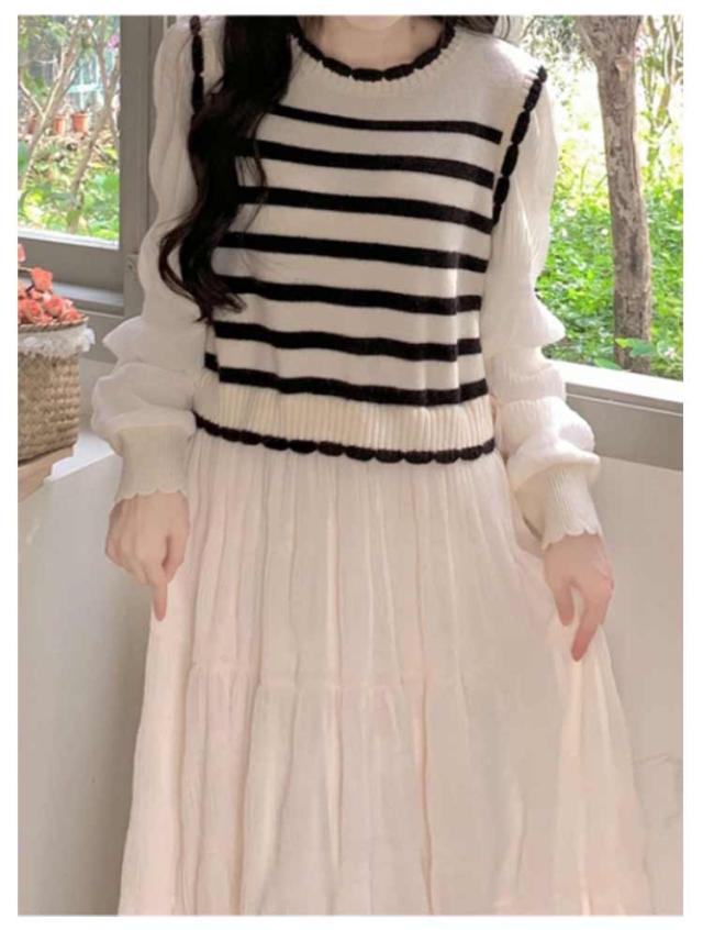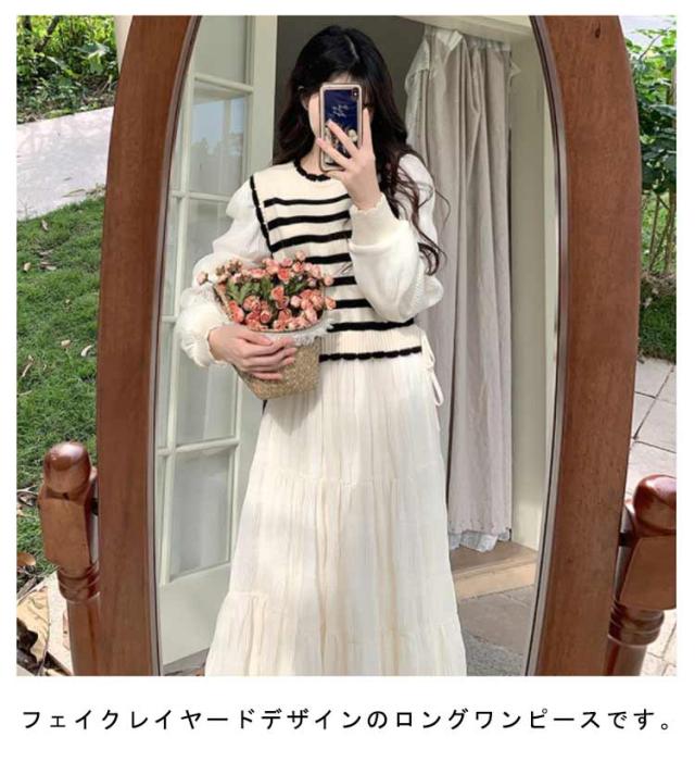 ワンピース 体型カバー 切り替え カジュアル ロングワンピース 大きいサイズ きれいめ フェイクレイヤード フェイクレイヤード ボーダー モード系 春 L XL 2XL 3XL