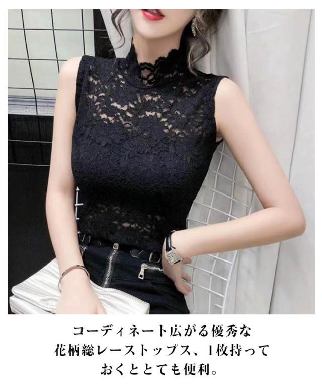 フリル レースブラウス シャツブラウス レディース 送料無料 ハイネック 花柄レース スケスケ シースルー トップス ノースリーブ ブラウス レイヤード 長袖 総レース インナー 重ね着 春服 お洒落 着痩せ エレガント キレイめ プルオーバー 透け感
