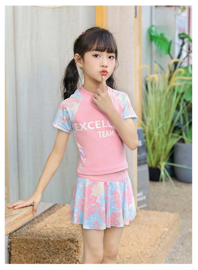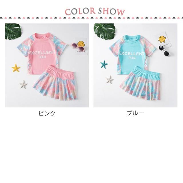 キッズ水着 女の子 セパレート 水着 2点セット ジュニア水着 スクール水着 半袖 トップス スカート インナーパンツ付き 日焼け対策 水遊び 幼稚園 小学生 中学生 高校生 子どもみずぎ ガールズ スイムウェア プール 海 ビーチ リゾート 可愛い
