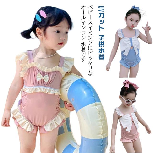 ベビー 水着 キッズ オールインワン ワンピース UVカット 子供水着 ベビースイミング 女の子キッズ水着 ガールズ 水着 子供 ジュニア かわいい フリル ラッシュガード スイムウェア 海プール スイミング ビーチ 紫外線 水遊び