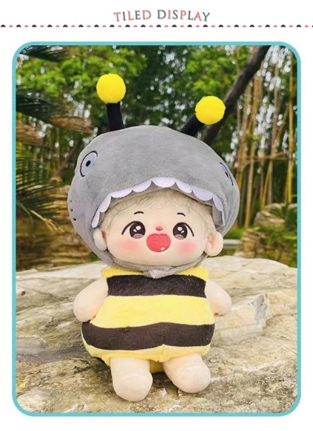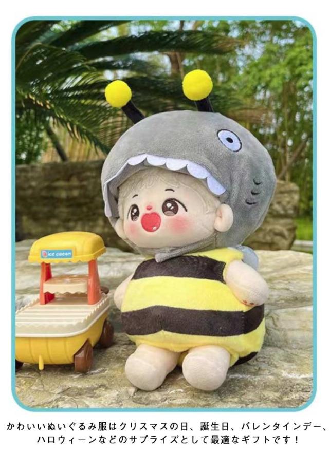 | サメ×蜂のぬいぐるみ用着ぐるみが登場! 綿人形・ぬいぐるみサイズのドールと組み合わせて、どんな人形のドールも似合いと見えます。 かわいいぬいぐるみ服はクリスマスの日、誕生日、バレンタインデー、ハロウィーンなどのサプライズとして最適なギフトです! | |