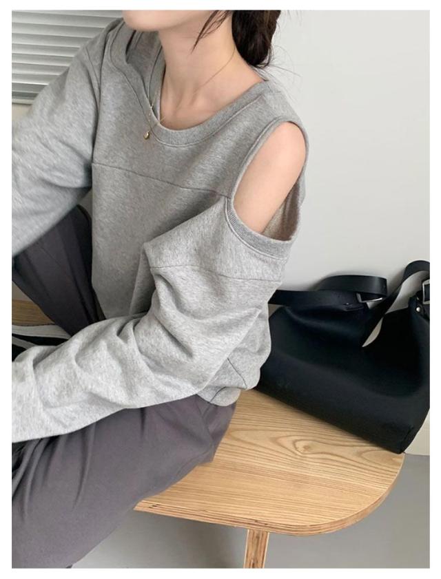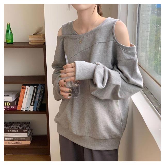 長袖トレーナー スウェット 肩開き トレーナー 春秋 肩出しトップス 肩あき 大きいサイズ レディース Tシャツ プルオーバー カットソー スウェット カジュアル 肩開き 肩見せ 肌見せ ゆったり 個性的 無地 きれいめ おしゃれ セクシー