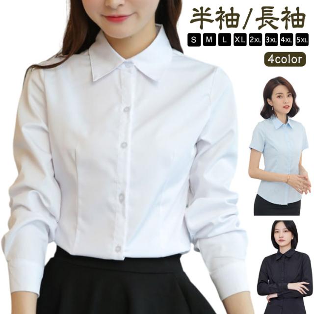 スーツ ノーアイロン オフィス シャツ 事務服 就活 半袖 インナー 長袖 ワイシャツ 形態安定 レディース シャツ 白 黒 無地 Yシャツ フォーマル リクルート シワになりにくい OL 入学式 制服 通勤 トップス ストレッチ