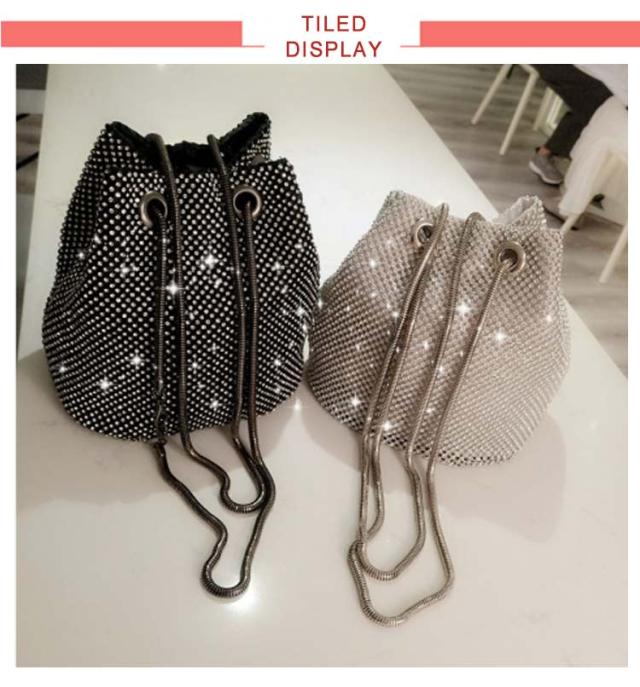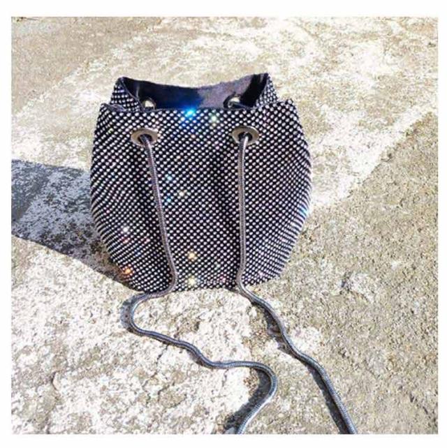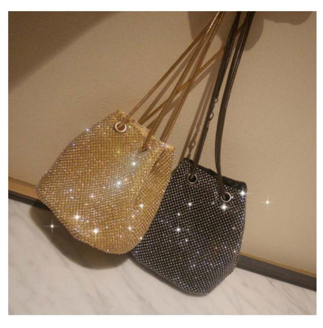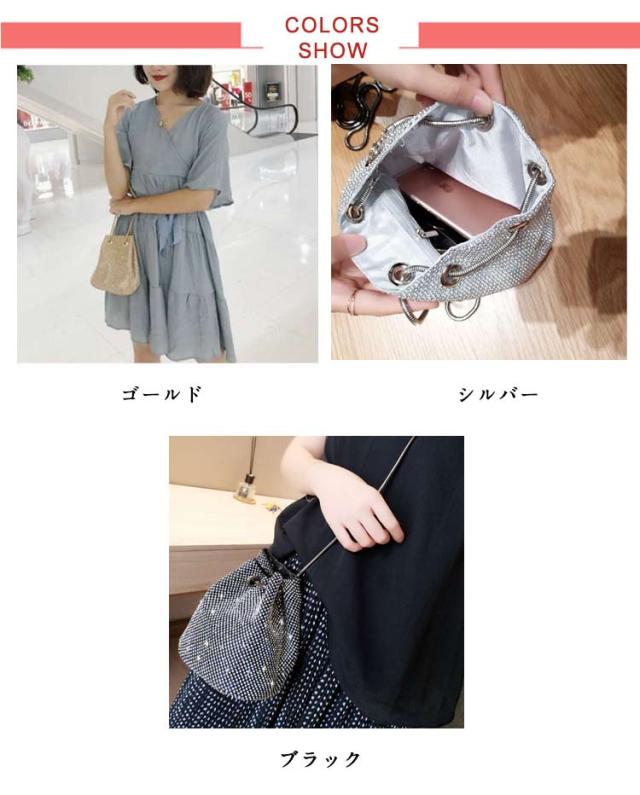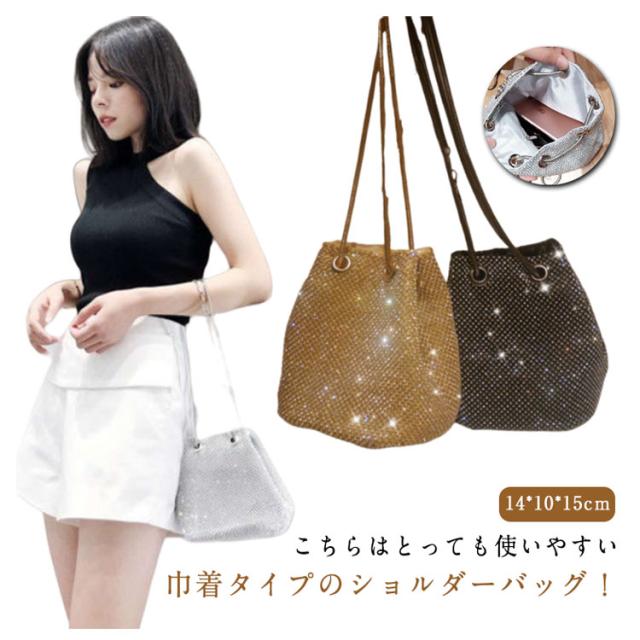 バケツバッグ キラキラ ラインストーン 小さめ ミニ 巾着バッグ 肩掛け パーティーバッグ 鞄 ポシェット きれいめ 斜め掛け チェーン 高級感 上品 きらきら コンパクト 可愛い おしゃれ キラキラ ゴールド シルバー ブラック 女性 ギフト プレゼント