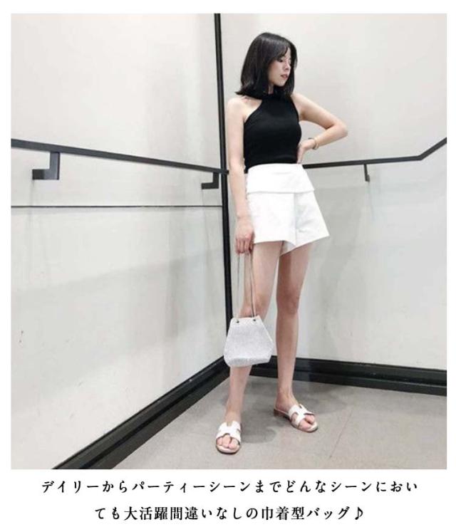 | こちらはとっても使いやすい巾着タイプのショルダーバッグ! キラキラが可愛い♪ デイリーからパーティーシーンまでどんなシーンにおいても大活躍間違いなしの巾着型バッグ♪ 女子会や、ちょっとしたお出かけ、公園でのお散歩、旅行先のレストランなどでの食事の際にスマホや、ルームキー、お財布、ハンカチ、口紅などを入れておくのにも最適。 一年中使えるのも嬉しいポイント! | |