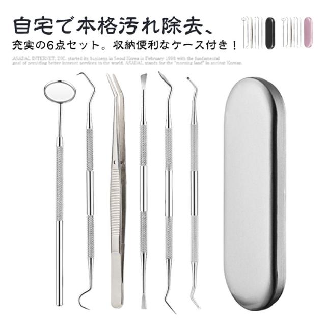 歯石取り 歯石とり 器具 自宅用 自分で取る スケーラー 歯垢 ヤニとり ステンレス製 先極細 デンタルツール 歯石除去 プロ仕様 口腔ケア器具 虫歯 口腔清潔 自宅用 送料無料 敬老の日 6点セット 歯科ツールセット 歯石取り
