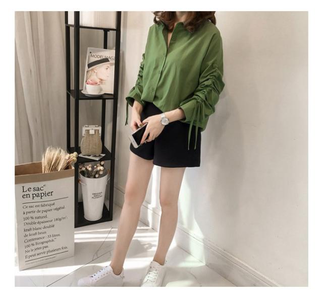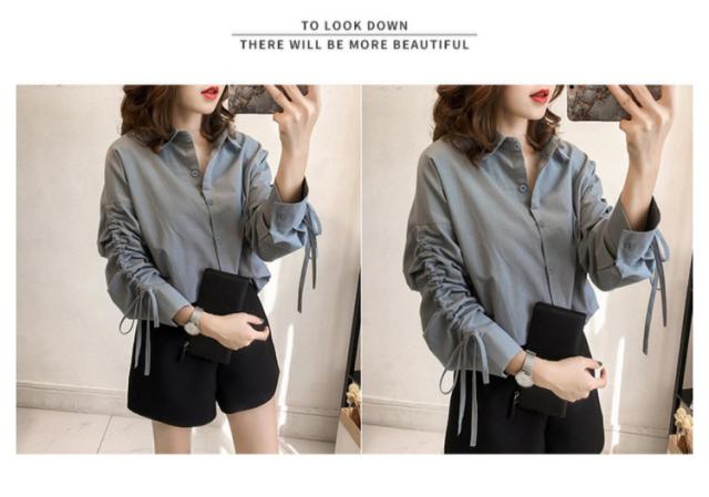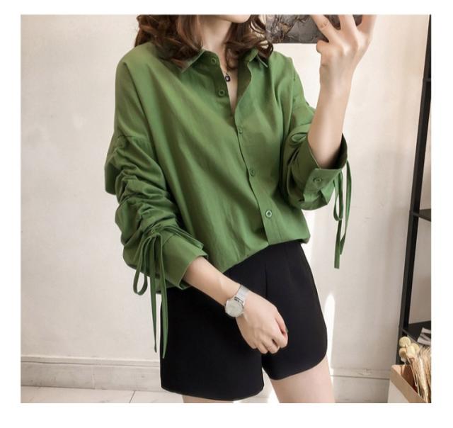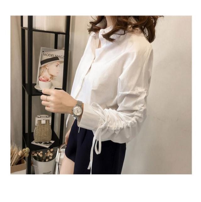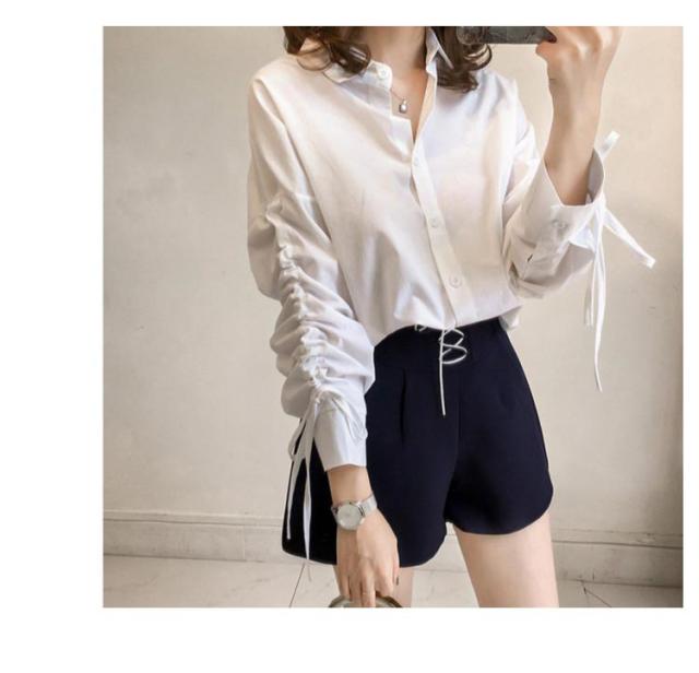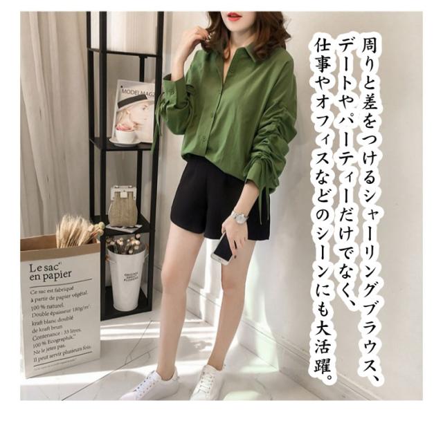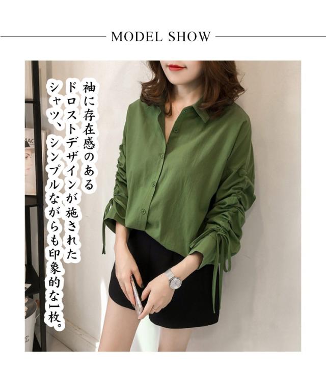 | 個性のある袖シャーリングブラウス。 袖に存在感のあるドロストデザインが施されたシャツ、シンプルながらも印象的な1枚。 袖リボンとくしゅっと感が可愛い袖シャーリングデザイン、シーンや気分に合わせて、キュッと絞ったりラフに結んだり着まわし力◎ 周りと差をつけるシャーリングブラウス、デートやパーティーだけでなく、仕事やオフィスなどのシーンにも大活躍。 | |