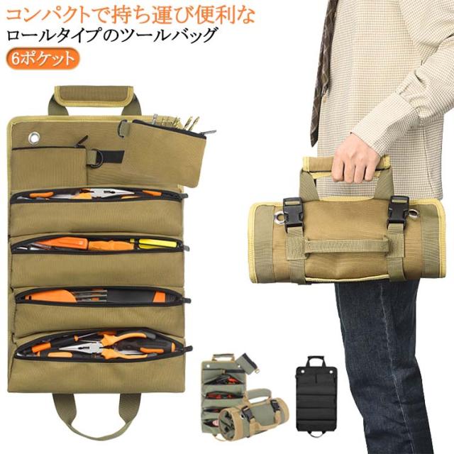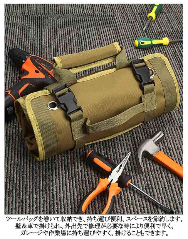 工具バッグ 工具袋 小型 壁掛け ロール 多機能 工具収納 道具袋 工具差し入れ 折り畳み式 工具ケース 配線 ツールバッグ 吊り下げ 大容量 かばん ポケット多い 防水 撥水 大工用 修理 ツールバッグ 鉄工 電工 作業道具