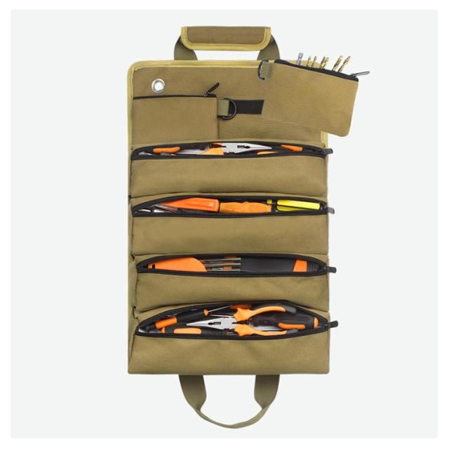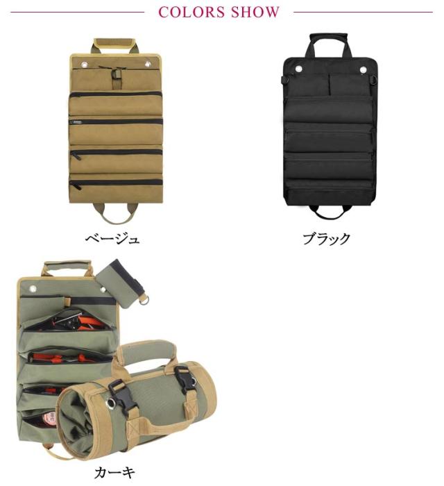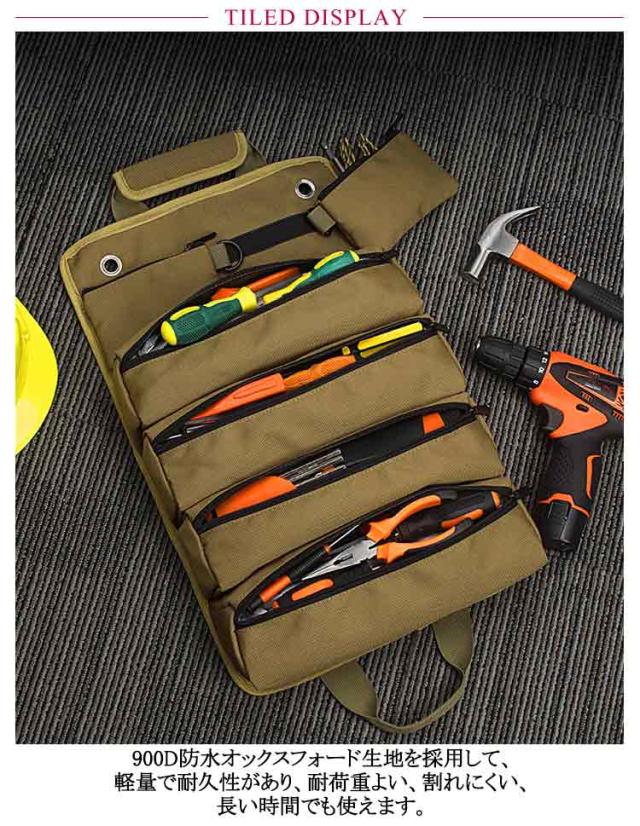 | コンパクトで持ち運び便利なロールタイプのツールバッグ。【6ポケット】 900D防水オックスフォード生地を採用して、軽量で耐久性があり、耐荷重よい、割れにくい、長い時間でも使えます。 ツールバッグの展開サイズは49*32cmで、4つの独立した立体的な差し込みポケットがあり、レンチ、ドライバー、巻尺、ハサミ、ペンチやソケットなど様々なツールをすっきりとコンパクトに収納することが可能です。 ツールバッグを巻いて収納でき、持ち運び便利、スペースを節約します。壁&車で掛けられ、外出先で修理が必要な時により便利で早く、ガレージや作業場に持ち運びやすく、掛けることもできます。 | |