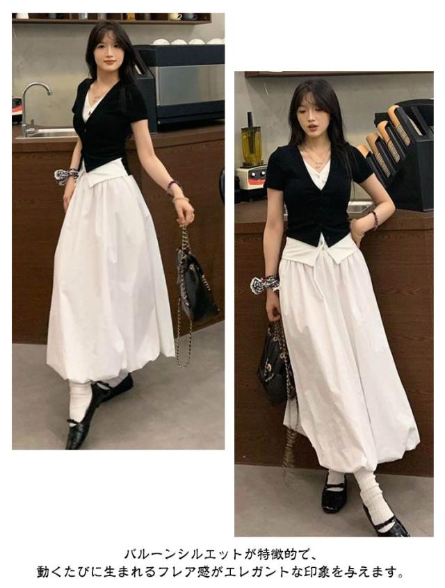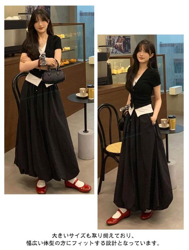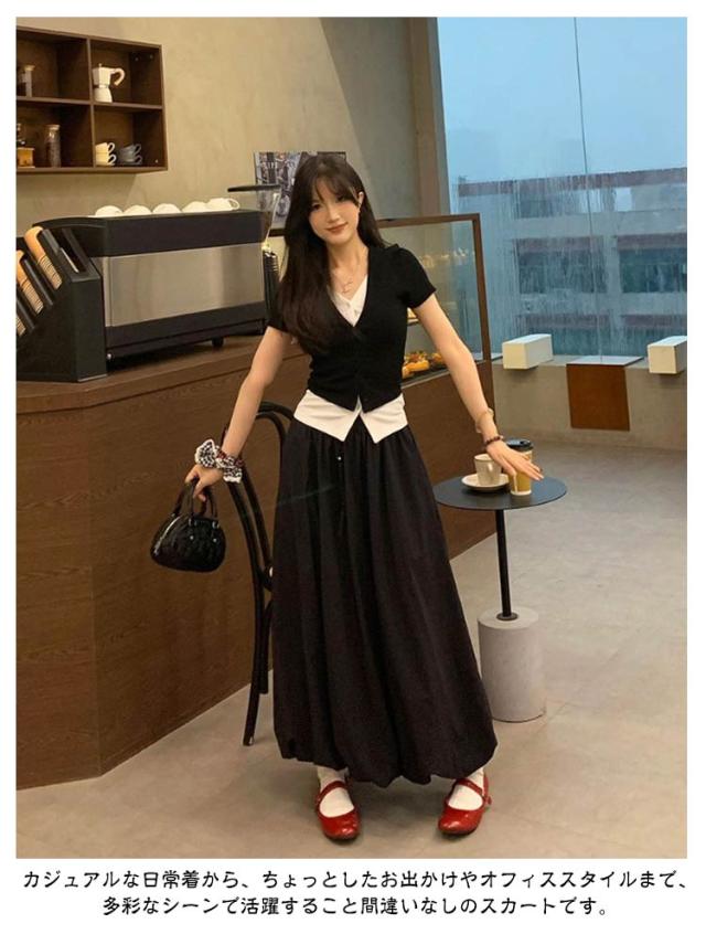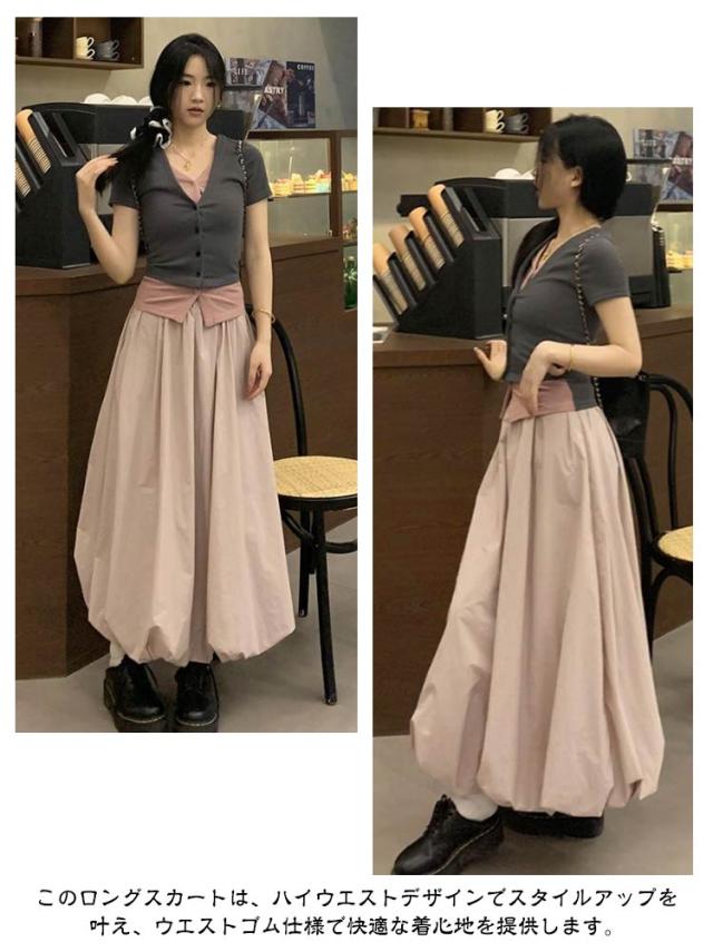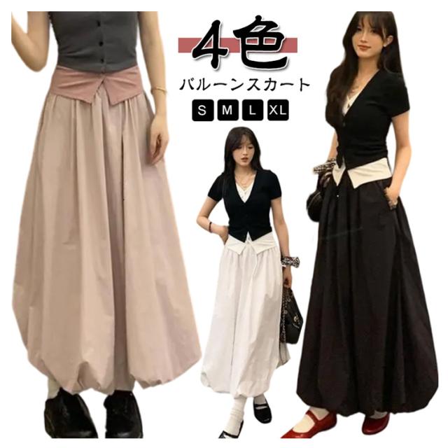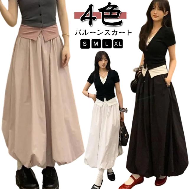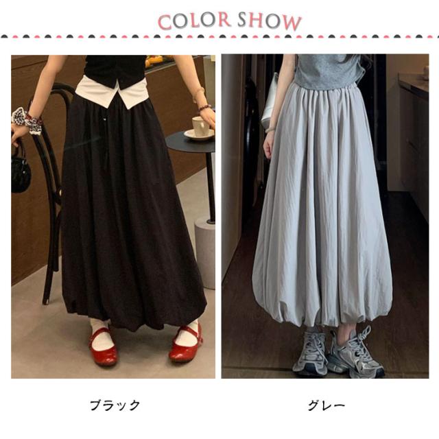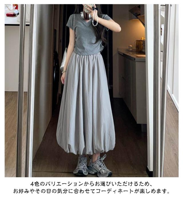 バルーンスカート Aライン フレアスカート ロングスカート 体型カバー ロング丈 コクーンスカート マキシスカート バルーンスカート レディース 大きいサイズ ボトムス ウエストゴム マキシ丈 バルーン ロング 大人可愛い 春 夏