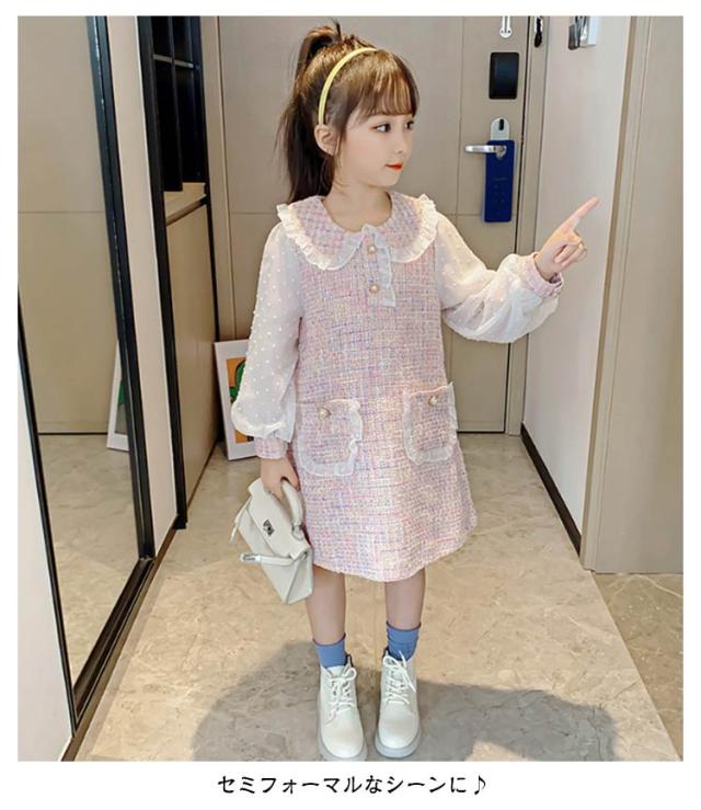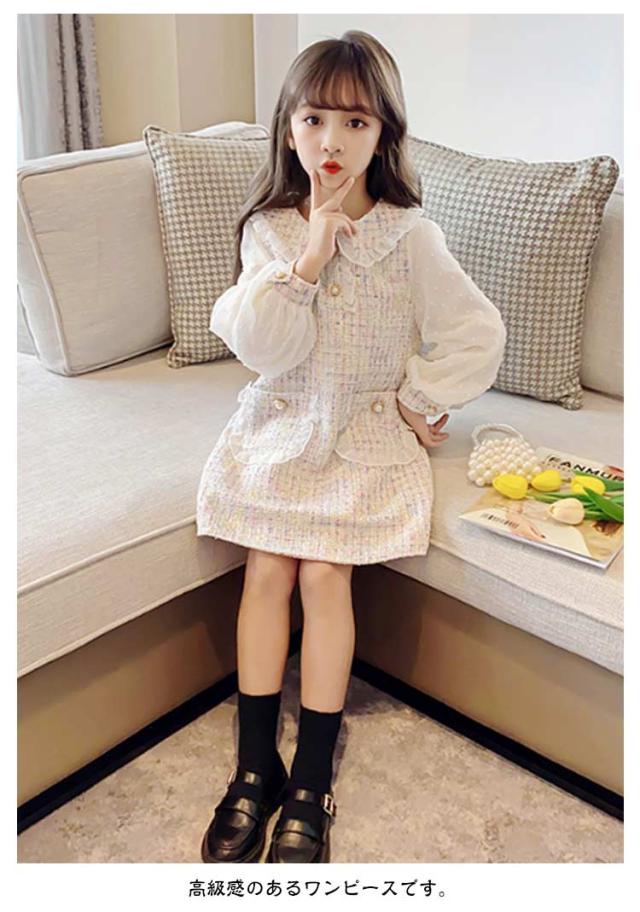 女の子 子供服 入園式 子ども ジュニア チュニック スーツ フォーマル キッズ 140 綿 ワンピース 服 きれいめ かわいい 110 120 130 ドレス 150 セレモニー 卒園式 入学式 ピアノ発表会 160 おしゃれ 結婚式 春 秋冬 ツイード おでかけ