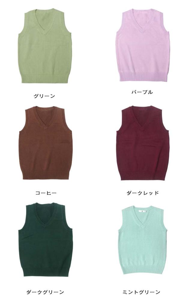 | 全18色!スクールニットベスト 無地、Vネック、ワイシャツに相応しい♪ 上質な素材かつ丁寧な仕上げで、着心地良いです。 シンプルなデザイン、幅広シーンで大活躍する1着。 | |