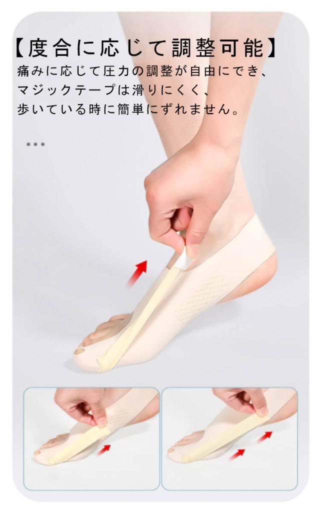 | 【固定サポート】足指サポーターは強いストレッチで足指の位置を固定し、外反母趾を正常な範囲に固定し、外反母趾の摩擦と痛みを軽減し、外反母趾を緩和し、外反母趾を改善します. 【着用簡単】この足趾サポーターは、靴下を履くように簡単に着用できます。足にぴったりフィットするデザインで、足指に十分な固定サポートを提供し、昼夜問わず使用できます。 【超薄型】生地は肌触りが良く、軽量で通気性があり、蒸れません。睡眠中や靴を履く時、靴下を着用する時、運動中、立っている時など、さまざまな状況で使用できます。 【ずれにくい設計】幅広いかかとベルトには面ファスナーを使用していますので、高弾力でズレにくくなっています。 【度合に応じて調整可能】痛みに応じて圧力の調整が自由にでき、マジックテープは滑りにくく、歩いている時に簡単にずれません。 | |