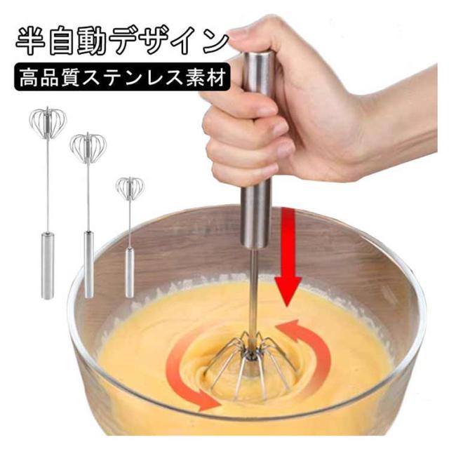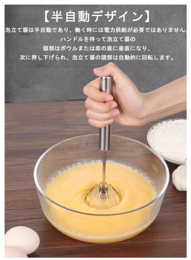 泡立て器 半自動回転 圧力ロータリー 軽く押すだけ ステンレス製 ハンドブレンダー キッチンツール ケーキ道具 製菓道具 家庭 用業務用 離乳食 介護食 手押し卵ビーター 攪拌機 混ぜる かき混ぜ ハンドミキサー お手入れ簡単 送料無料