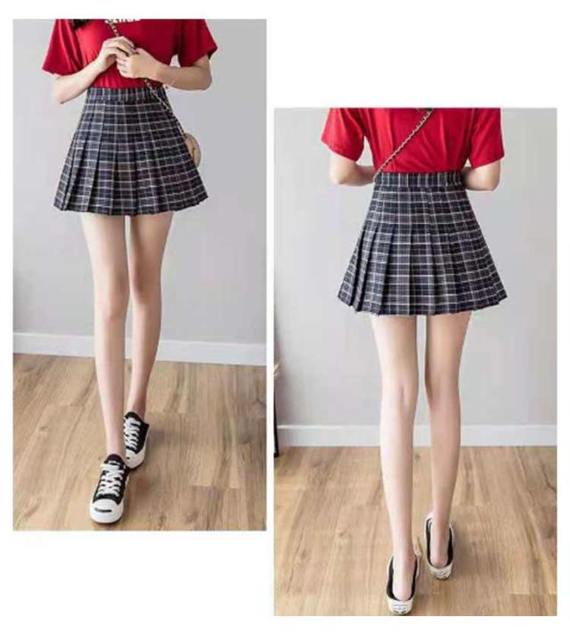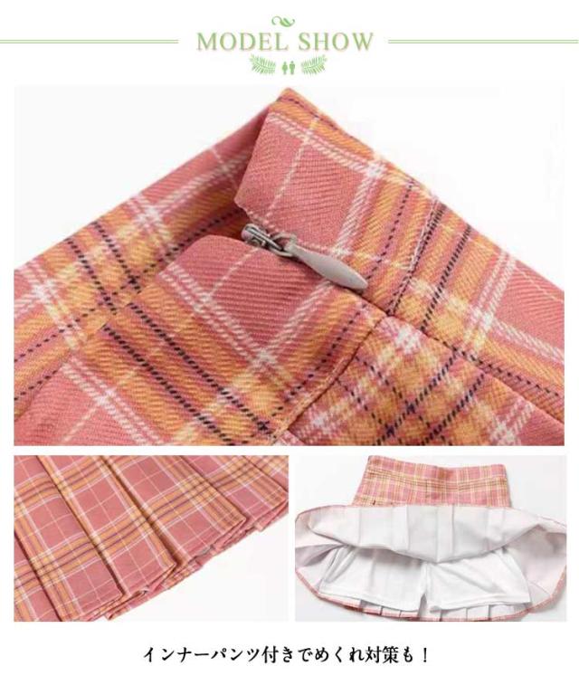 | 定番のチェック柄! ミニ丈とAラインの組み合わせで美脚効果も、、、? カジュアルの服とも相性バッチリです。 インナーパンツ付きでめくれ対策も! | |
