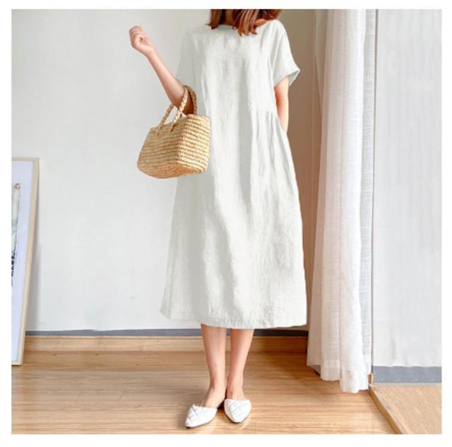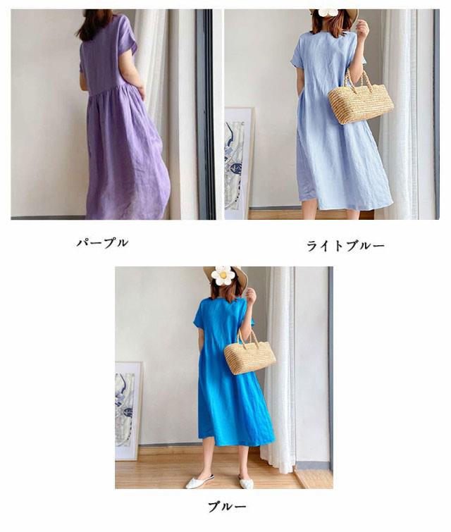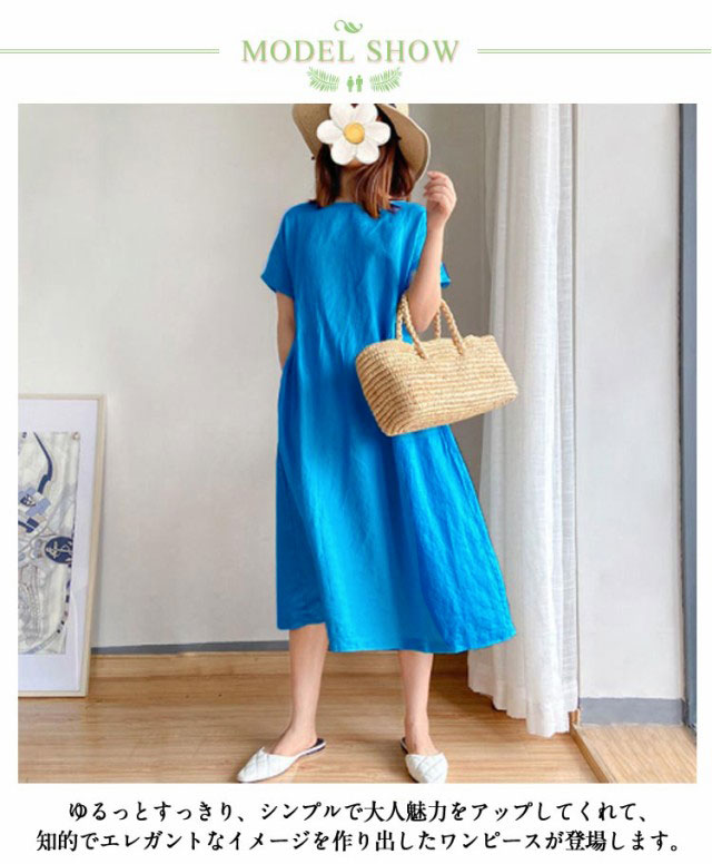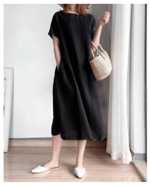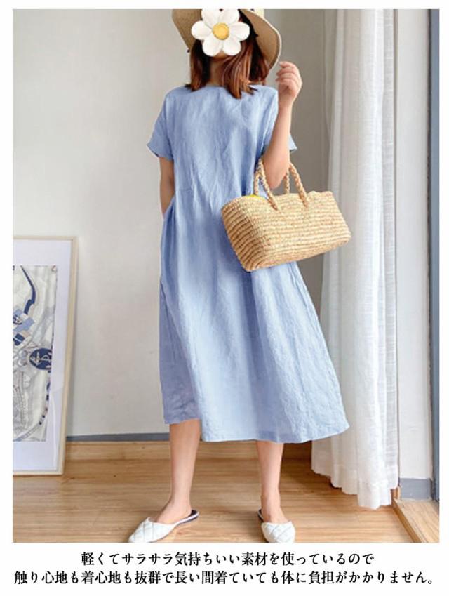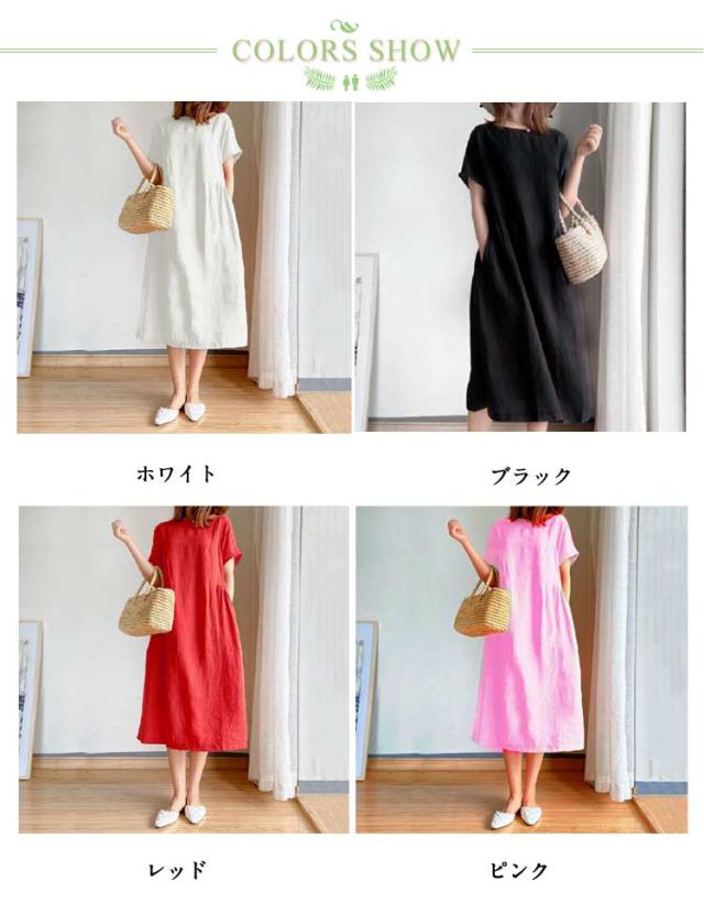 ワンピース レディース ワンピース ナチュラル 半袖 薄手 涼しい おしゃれ 袖あり ミモレ丈 ロング丈 カジュアル 春 夏 春夏 ワンピ ドレス シンプル 森ガール ブラック 黒 無地 20代 0代 40代 50代