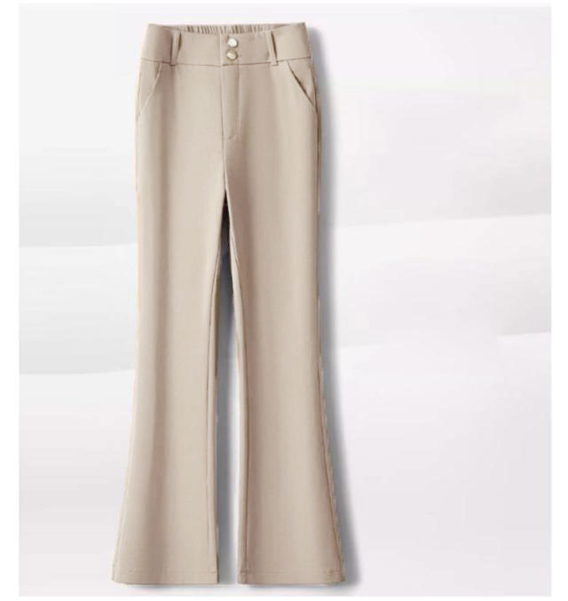| ラインにフィットし、伸縮性が抜群のフレアロングパンツです。 しっかりした生地感&ソフトな肌触りだから履き心地良い!! パンプスにはもちろん、スニーカー、ショートブーツにも相性抜群で、とても合わせやすい一枚! | |