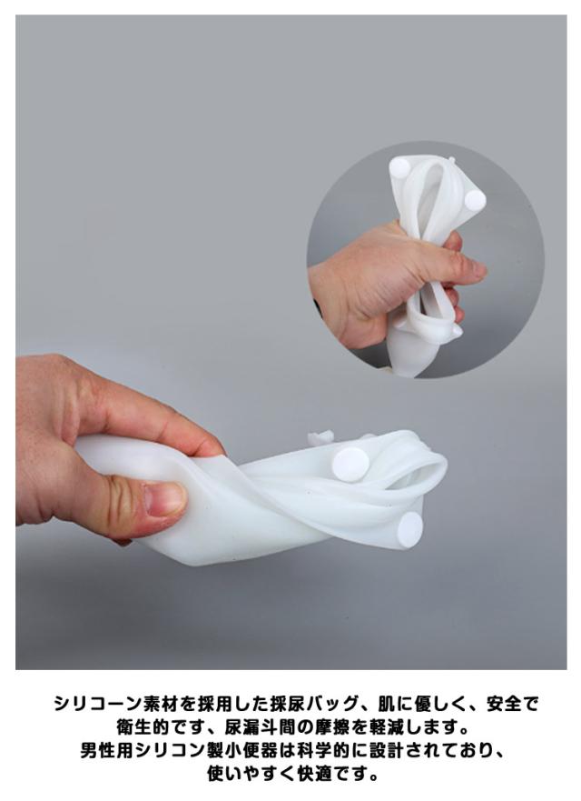 | 寝たきり高齢者や失禁対策に最適!お手軽に使用できる小便器。 高品質な尿レッグバッグが2つ付属しており、尿は小便器から収集バッグに急速に排出されます。ポータブルで使いやすい。 尿バッグは幅広いゴムバンドとスナップ穴を備えており、伸縮性が高く変形しにくいため、さまざまなウエストラインに合わせて調整できます、取り外しと取り付けが簡単なデザインです。再利用可能、お手入れ簡単。 シリコーン素材を採用した採尿バッグ、肌に優しく、安全で衛生的です、尿漏斗間の摩擦を軽減します。男性用シリコン製小便器は科学的に設計されており、使いやすく快適です。 この尿収集バッグとカテーテルが完璧に接続され、隙間なく設計されています。逆流を防止するための注意深い設計が施されており、横向きでも尿漏れの心配はありません。 高齢者、虚弱な方、病気や身体障害を抱える方、骨折、麻痺、頻尿、尿意切迫感、尿失禁、錯乱状態にある方、自己介護ができない方に適しています。 | |