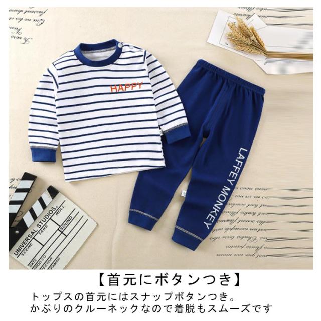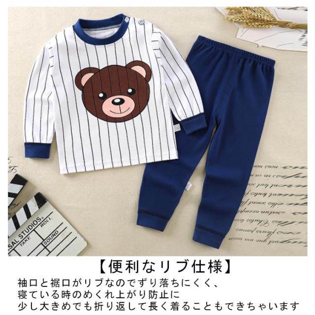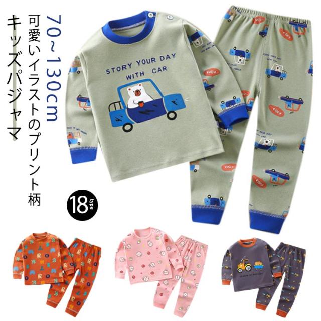 | キッズパジャマ 70~130cm 【可愛いイラストのプリント柄】 毎日の就寝時に!長袖 長ズボンがセットアップになった可愛いパジャマ登場! 寝巻き、部屋着からお泊り保育まで。兄弟お揃いにもできる豊富なサイズ展開♪ 【便利なリブ仕様】 袖口と裾口がリブなのでずり落ちにくく、寝ている時のめくれ上がり防止に 少し大きめでも折り返して長く着ることもできちゃいます 【コットンにこだわりました】 程よい厚みなので春夏、秋冬問わずオールシーズン使えます 【首元にボタンつき】 トップスの首元にはスナップボタンつき。かぶりのクルーネックなので着脱もスムーズです | |