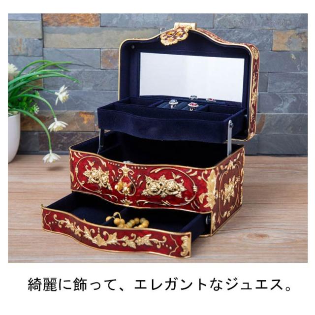 小物入れ ジュエリーケース 螺鈿細工 木製 宝箱 ジュエス 宝石箱 収納 アンティーク調 ピアス アクセサリーケース 鍵付き ネックレス 大容量 ジュエリーケース 小物入れ リング ネックレス 指輪 宝石 アクセサリー入れ ミラー付き レッド ホワイト ブルー