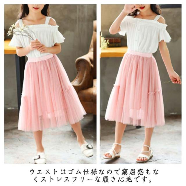 キッズ ウエストゴム スカート ミディアム丈スカート 卒業式 スカート チュールスカート チュールスカート チュール チュチュスカート きれいめ レース 女児 卒園式 女の子 子供 チュチュ 可愛い 大きいサイズ 無地 シンプル 春夏 ふんわり