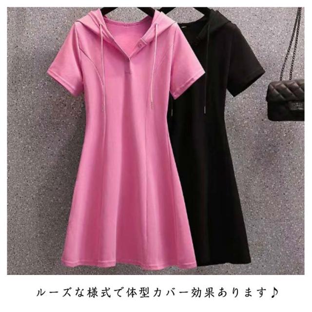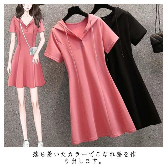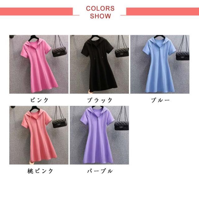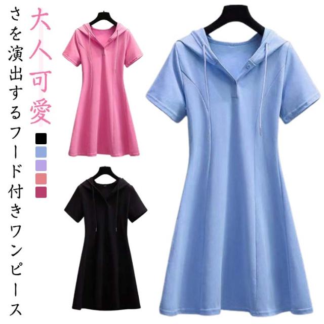 トップス パーカーワンピース 可愛い 半袖 大人 着痩せ ワンピース ゆったり カジュアルワンピース パーカー フード付き ポロシャツ 体型カバー カジュアルワンピース カジュアル シンプル 大きいサイズ 秋 無地 ゴルフスカート かわいい 入学式 卒業式 通勤 春 夏 おしゃれ