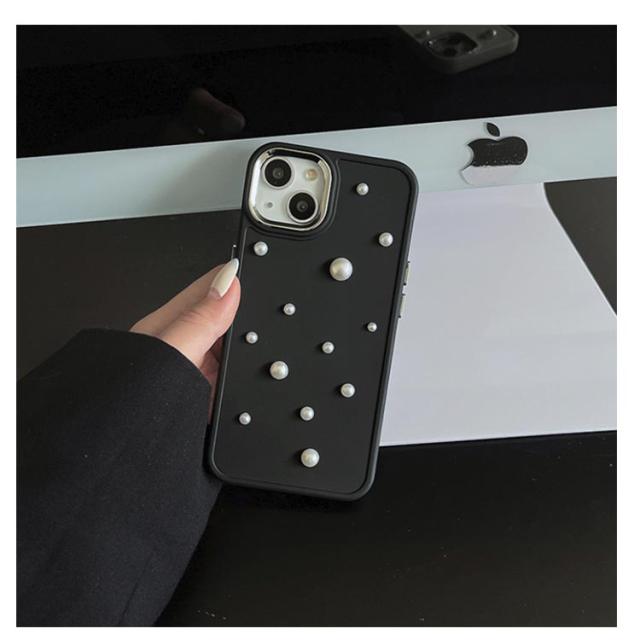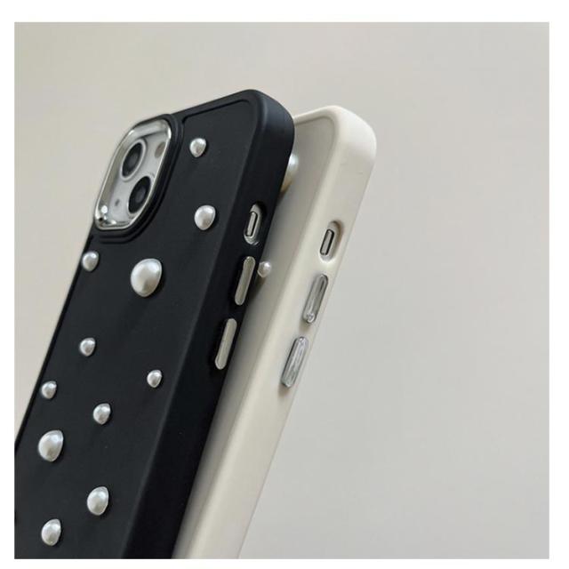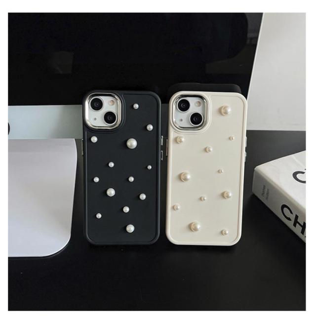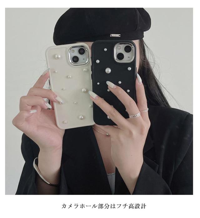| パールが映えるiPhoneケース カメラホール部分はフチ高設計 | |