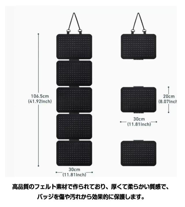 | 洋服ラックのように収納が出来るピアスラックです。 ピアスだけではなく、お持ちのピンバッジも付けることが可能です。 高品質のフェルト素材で作られており、厚くて柔らかい質感で、バッジを傷や汚れから効果的に保護します。 便利な吊り下げの収納仕様。ドアや壁に掛けて場所を取らずに収納できます。 お部屋をすっきりと整頓し、装飾的な役割を果たします。 | |