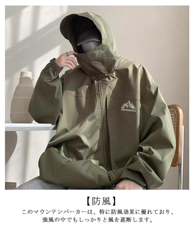 | アウトドアでのアクティビティな動きにも対応でき、快適さと機能性を兼ね備えた一着です。 【撥水加工】優れた撥水加工が施されており、突然の雨の水分を効果的に弾きます。外からの水をしっかりとシャットアウトし、服の内部を常にドライに保つことができます。 【防風】このマウンテンパーカーは、特に防風効果に優れており、強風の中でもしっかりと風を遮断します。特殊な素材が風の侵入を防ぎ、体温の低下を防止するため、寒い環境下でも快適に過ごすことができます。 【軽量化】非常に軽く、長時間の着用でも疲れにくいため、アウトドアや旅行など、持ち運びが必要なシーンでも大活躍します 【サイズ感】ゆったりとしたサイズ感が特徴で、リラックスした着心地を提供します。通常のジャケットよりも少し大きめに設計されており、動きやすさを重視したデザインです。重ね着もしやすく、寒い季節にはインナーを多く着込んでも窮屈さを感じません。 | |