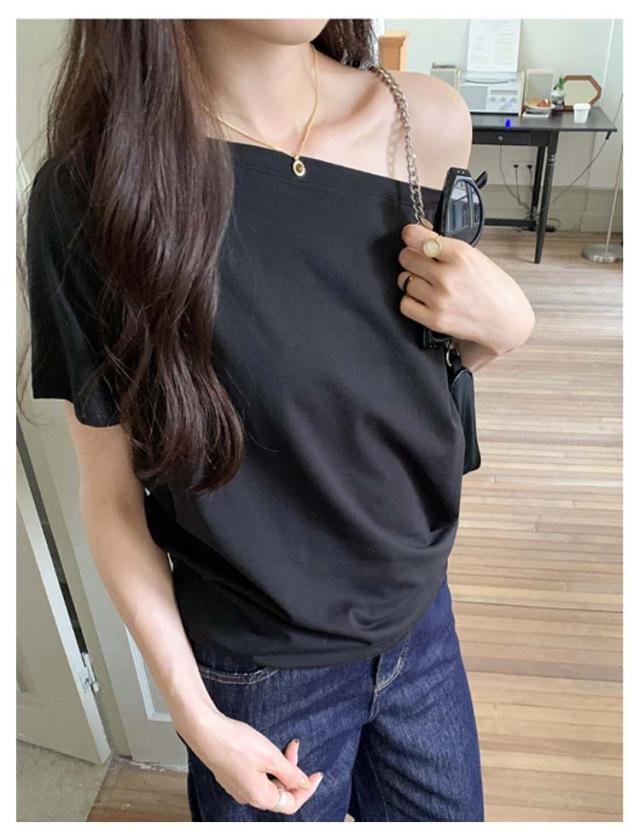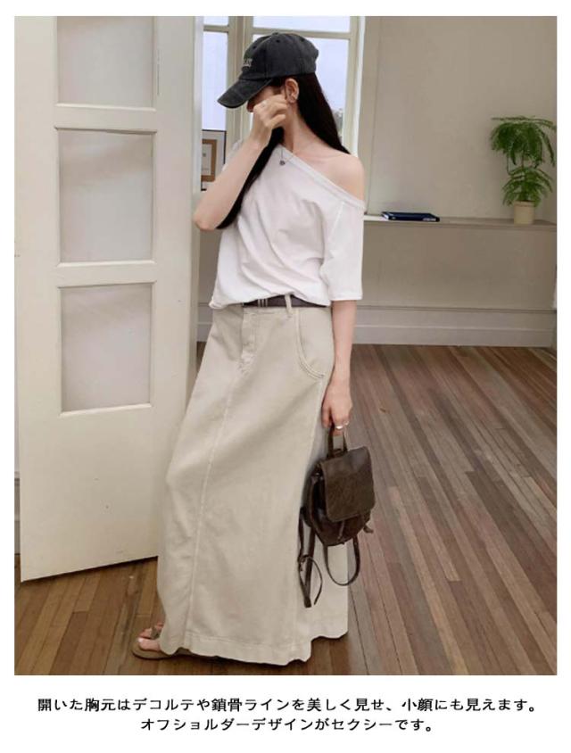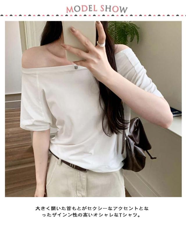 オフショルダー カットソー オフショル Tシャツ オフショル オフィス セミオフショルダーカットソー 春 半袖 トップス きれいめ オフィスカジュアル 夏 レディース 秋 高級感 高見え ゆったり