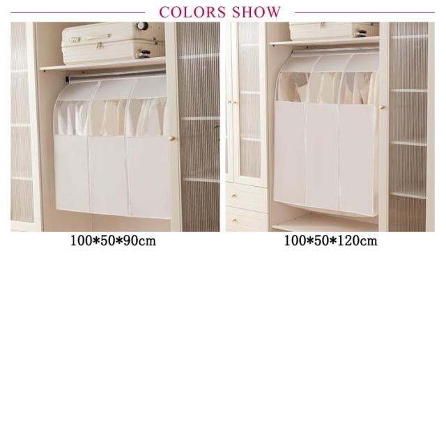 | 大切な洋服をほこりや害虫からしっかりガード!マチ付き衣類カバー【幅100cm】【長さ90cm&120cm】 PEVAで作られて、お大切な服をホコリ、カビ、湿気、虫や汚れからしっかり守って、服を型崩れないし、衣類を大事に保管できます。 真ん中のファスナーを開けてサッと洋服を収納できます。 普通の洋服カバーと違い、裾の部分が閉じているため、床に落ちているほこりの侵入を防ぎます。 洋服カバーが汚れた場合、濡れた布で拭きすぐに綺麗になります。 使わないときは折りたたんでコンパクトに収納可能。 クローゼットの中が整理でき、きれいに片付けます。 | |