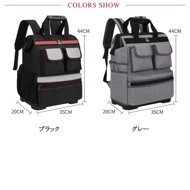 | リュック型大容量ツールバッグ。【強化底部、自立機能】【15ポケット】 リュックデザインなので、普通の手提げのツールバックに比べてより楽に持ち運びできる。 豊富なポケットとホルダーでたっぷり収納、すっきり整理できる。小型工具から電動工具まで収納可能です。 6000D高密度オックスフォードを採用しています。強化縫製でしっかりと仕上げられ、耐荷重、耐摩擦、耐久性に優れてます。 バックパネルやショルダーストラップは幅を広め、柔らかなパッドが付いて、優れた減圧効果があり、長時間に重い工具を負担しても疲れにくいです。また、通気性が高い、汗などを速やかに吸収できます。暑い日でも快適に背負います。 工具入れバッグは様々な道具や工具の収納、携帯に、仕切りがついており大変便利です。ガーデニング、釣り、工芸、建築、大工、請負業者、屋根、ラインマン、石工、鉄工などの作業を携わる人に最適にします。日常生活のDIY活動だけでなく、自動車修理、木工および専門な修理活動も最適です。 | |