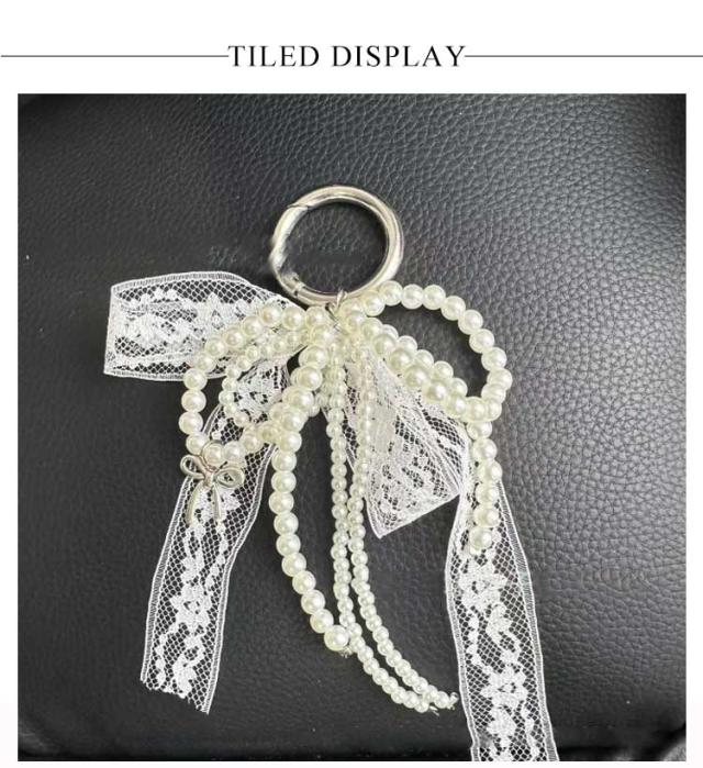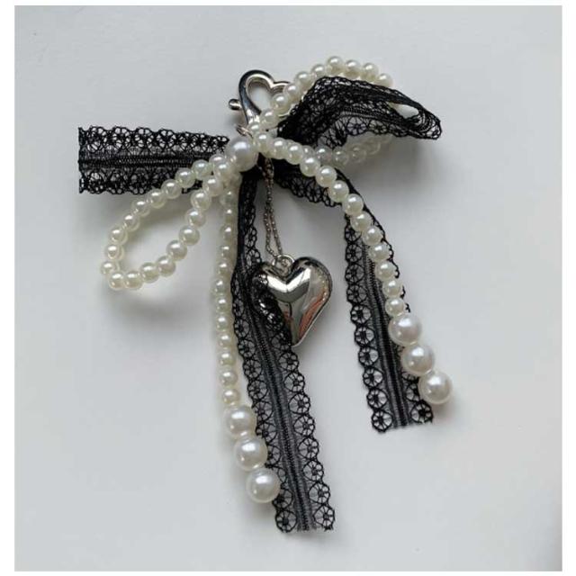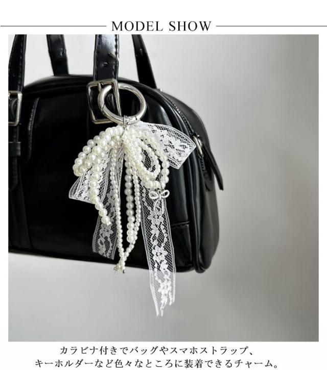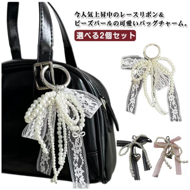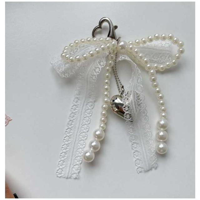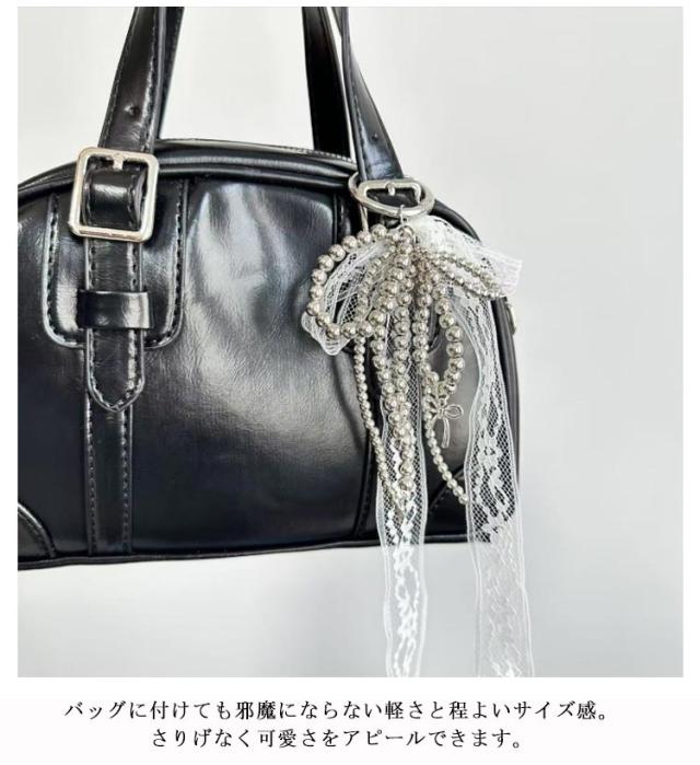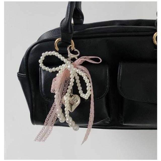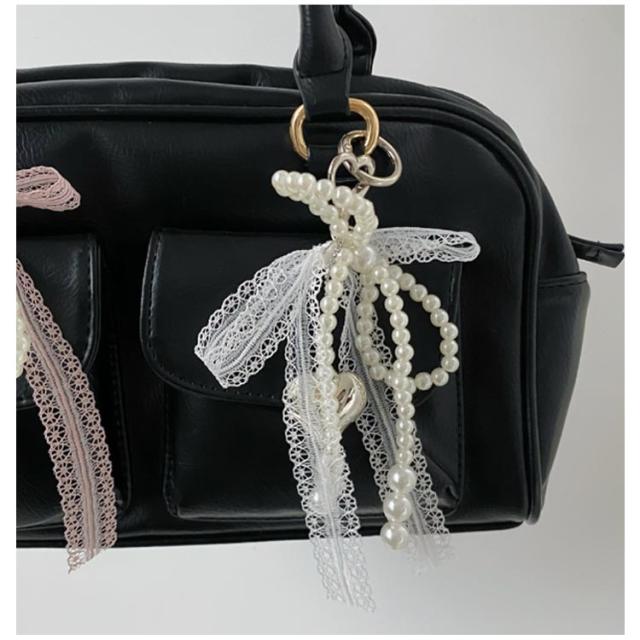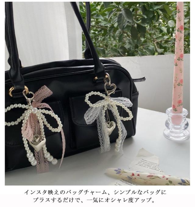レース ポーチ リボン バッグチャーム キーホルダー ストラップ パール ビーズ チャーム チャーム 送料無料 キーリング ハート 可愛い スマホ バッグ リボンチャーム チャーム スクールバッグ アクセサリー 通勤 通学