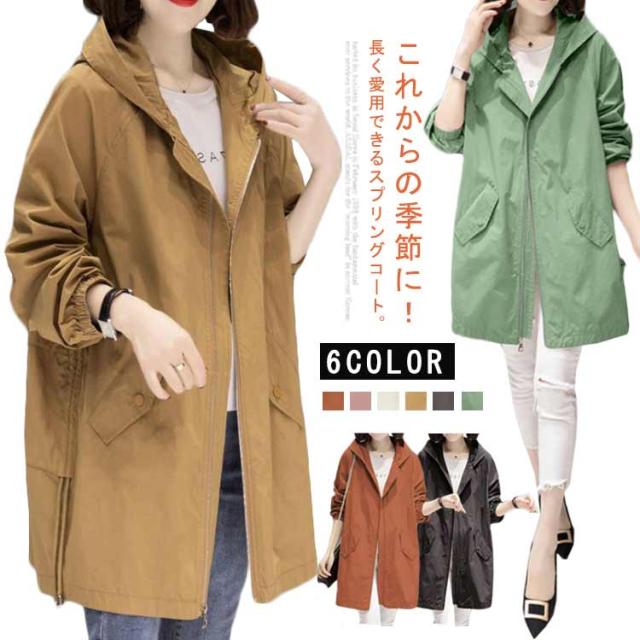 コート レディース 春服 長袖 春コート トレンチコート 春物 秋 トレンチコート 無地 ロングコート 春 フード付き ライトアウター ジャケット カジュアル スプリングコート おしゃれ 体型カバー シンプル フェミニン ブルゾン ロング丈 裏地付き 通勤 卒園式