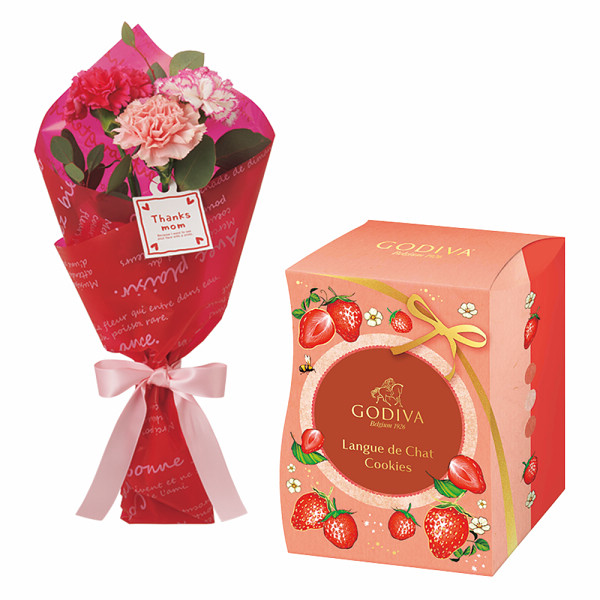 母の日☆母の日ゴディバ あまおう苺クッキーと母の日花束のセット 母の日、季節限定、お母さん、御母さん、贈り物、プレゼント、母の日ギフト、感謝、いつもありがとう、お菓子、ブランド、カーネーション、ブーケ、お花、送料無料