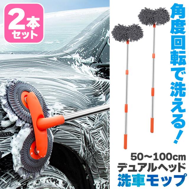 洗車モップ 伸縮 回転 2個セット 角度 洗車ブラシ 柄付き 50~100cm ボディ用 モップ単品 ホイール用 トラック用 ホイール モップ タイヤホイール 車のブラッシング 床モップ掛け ガラス掃除 伸縮 大型車 車 伸縮 洗車 傷つかない 洗車用品 掃除