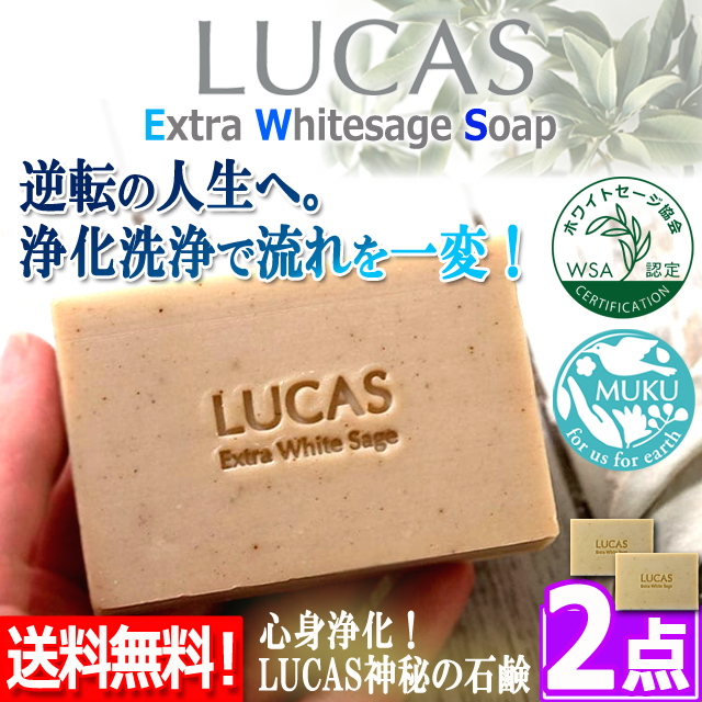 2個 LUCASルカス 天然由来成分100%ホワイトセージソープ 2点 泡立ち バスタイム 神秘 洗浄 浄化 神聖 石鹸 保湿 精油 お清め 幸運