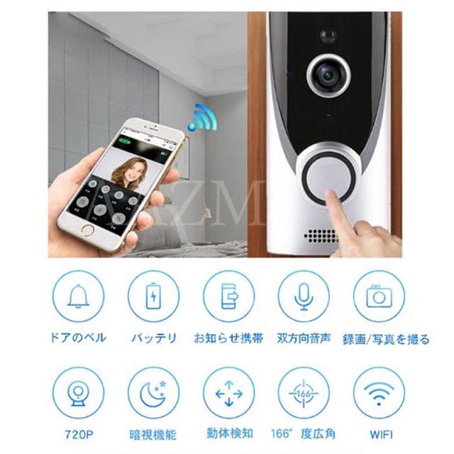 テレビドアホン ワイヤレス インターホン チャイム 無線 wifi対応 充電式 ドアベル 引き戸用 防盗用 166度広角レンズ 200万画素 介護 暗視機能 呼び鈴 送料無料