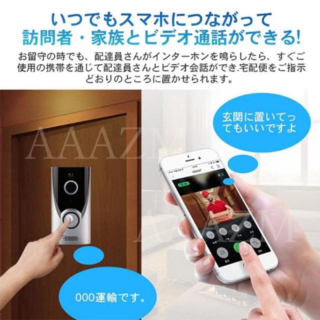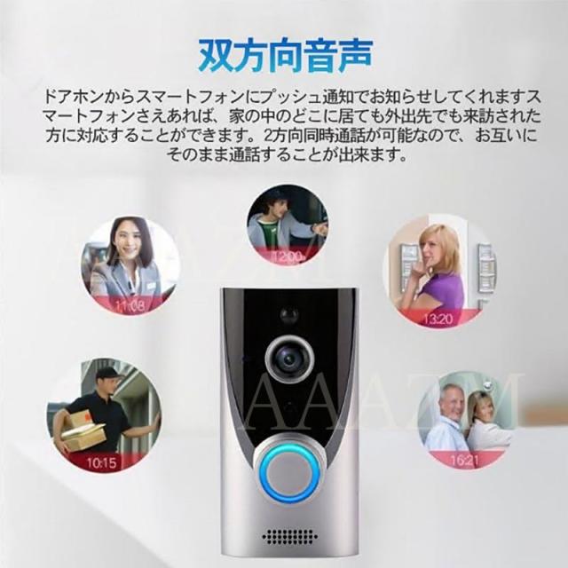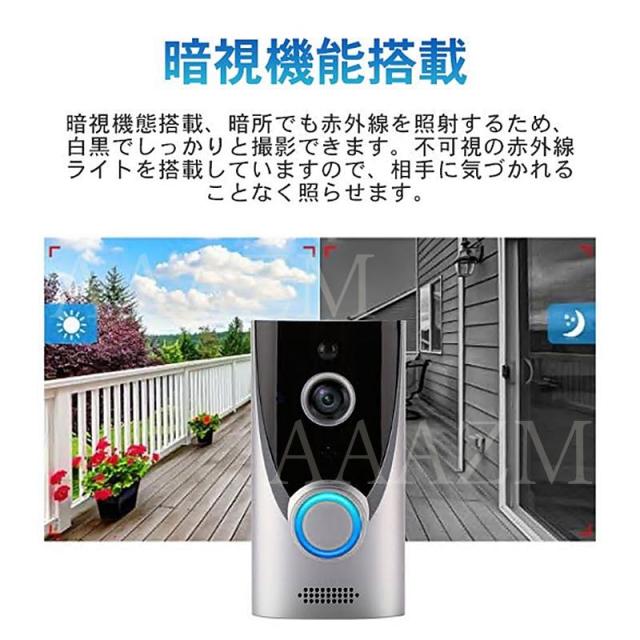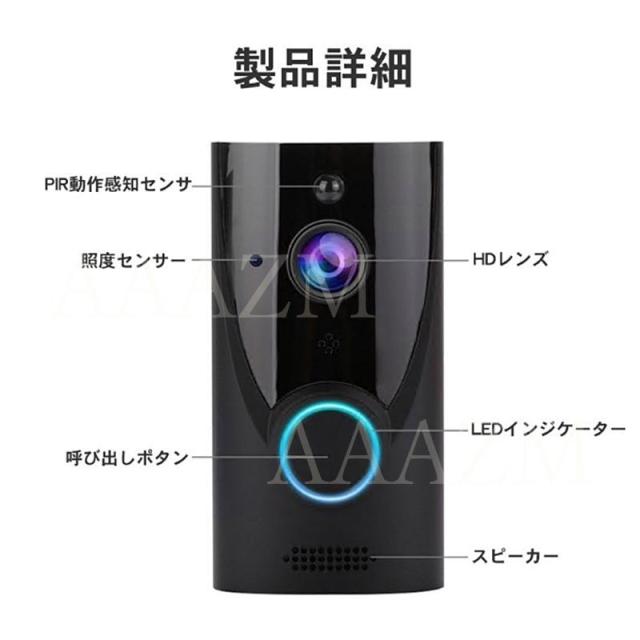 商品機能:ワイヤレスチャイム 呼び出し 暗視機能 動体検知(PIR動き検出) Wi-Fi対応 録画 撮影 双方向音声 工事不要