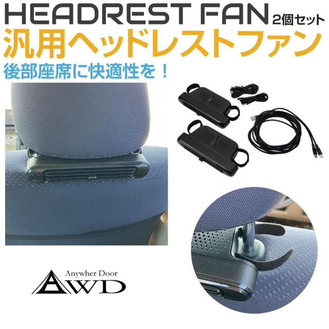 【2個セット】車 扇風機 後部座席 シート ファン サーキュレーター USB ヘッドレスト 涼しい ヘッドレストファン 運転席側/助手席側セット 汎用 AWD-HRFAN | 3段階風量調整 シートクーラー 自動車 車内