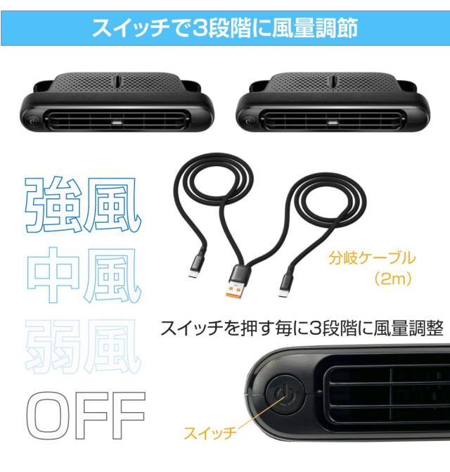 \コンパクト!3段階風量調整!/ドライブ アイディアグッズ 便利グッズ カー用品 アクセサリー 車載扇風機 車用扇風機 車内扇風機 座席 運転席 助手席 カーファン
