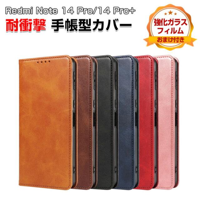 Redmi Note 14 Pro 5G ケース 耐衝撃 Redmi Note 14 Pro+ 5G カバー Xiaomi 小米 シャオミ レッドミー ノート14 プロ カバー レッドミー ノート14 プロ+ ケース 手帳型 財布型 TPU&PUレザー スタンド機能 便利 カード収納 人気 スマホ 手帳型カバー CASE 強化ガラス付き