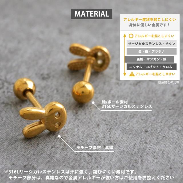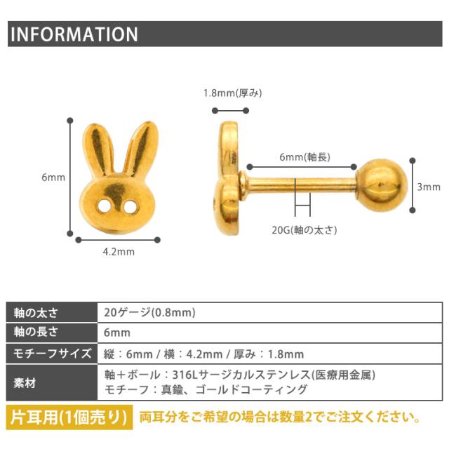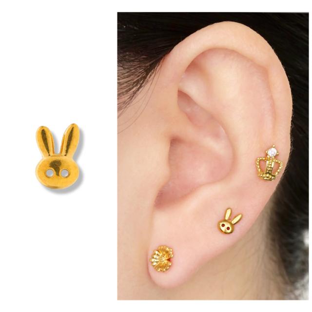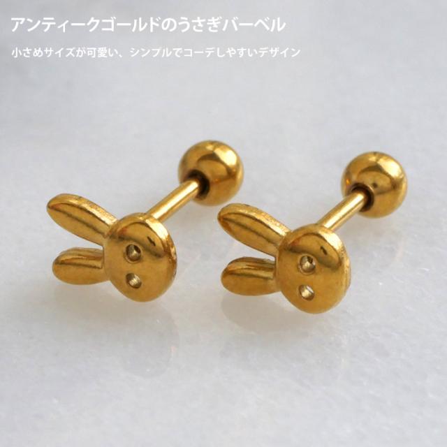 ぷっくりした小さめサイズのラビットモチーフストレートバーベル。 シンプルなフォルムがラブリーになりすぎず使いやすい。 太さは普通のピアスと同じ20Gなので、どなたでもお使いいただけます。 軸とボール部分はサージカルステンレス製ですが、モチーフは真鍮製ですので、アレルギーの強い方はお控えください。