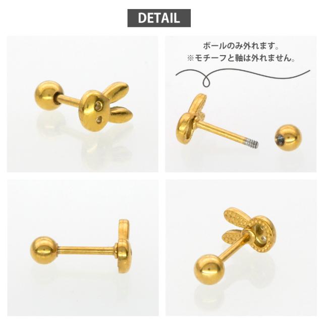 かわいい ボディピアス 20G ラビットフェイスバーベル ストレートバーベル ボディーピアス 軟骨ピアス トラガス ヘリックス
