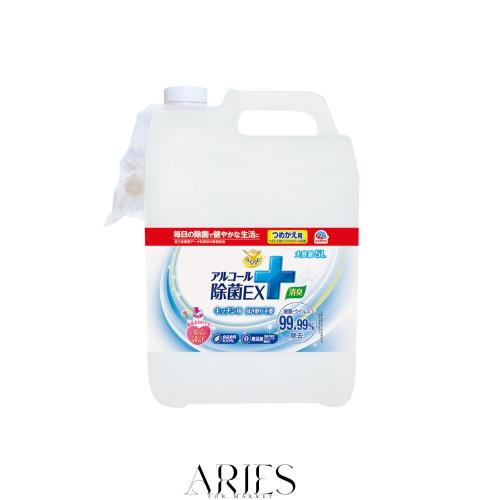細菌・ウイルスを99.99%除去し、食卓やキッチン周りを清潔にするアルコール除菌スプレーの詰め替え大容量5L。