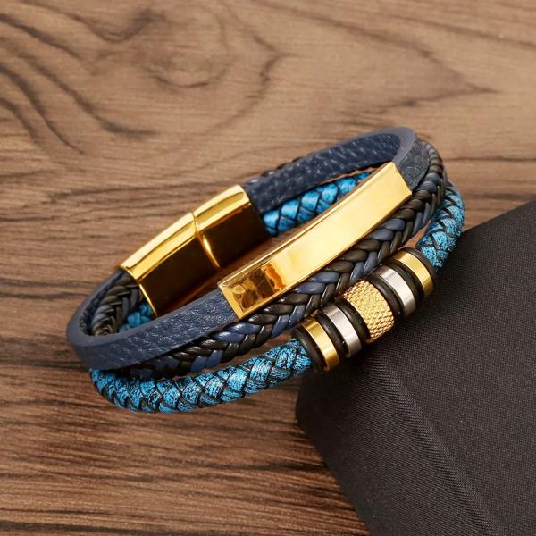 男性用のクラシックな多層レザーブレスレット,ファッショナブルなステンレス鋼,ヴィンテージチャーム,美しい男性へのギフト