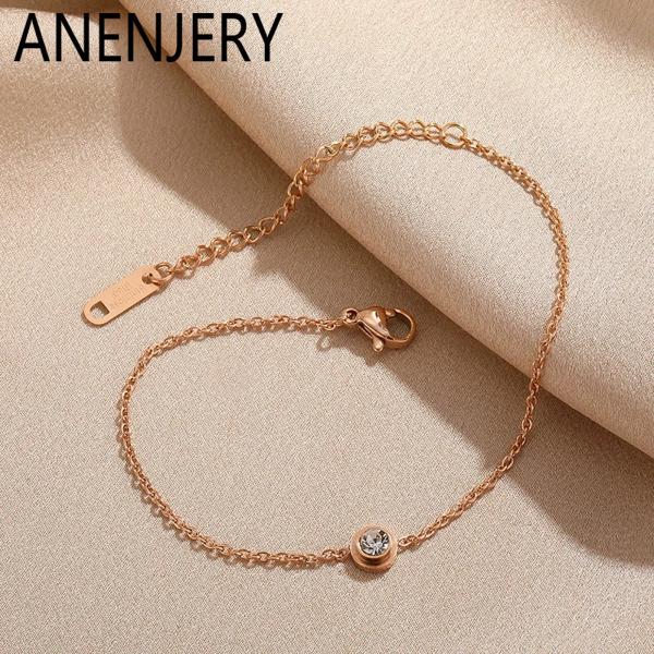 ANENJERY 316L ステンレス鋼ジルコン薄型ブレスレット女性男性シンプルなデザインクール韓国インジュエリーパーティー卸売