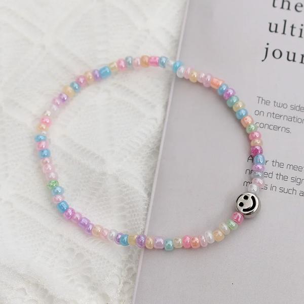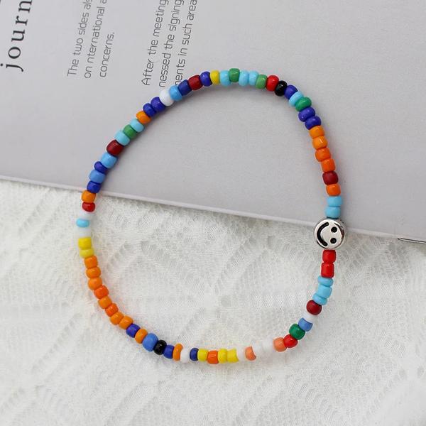 スマイル-女性のボヘミアンブレスレット,カラフルなシード,手作りのストランド,チャームジュエリー,夏