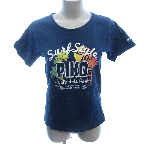 【中古】ピコ PIKO カットソー Tシャツ Uネック プリント 半袖 M 紺 ネイビー /AU レディース