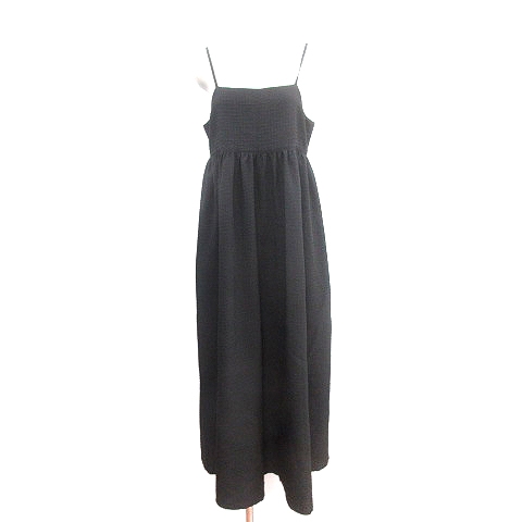 【中古】グローブ grove キャミソールワンピース ロング 総柄 M 黒 ブラック /AU レディース